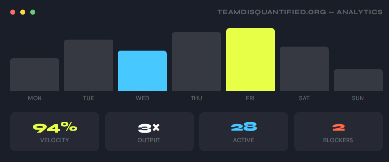 Stop guessing how your team is performing. Team Disquantified gives you real-time insights into velocity, blockers, and capacity — available at team disquantified org — so you can manage with confidence.