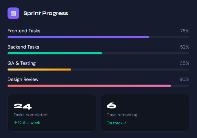 Create tasks in seconds with natural language input. AI auto-suggests deadlines, assignees, and priority levels based on your team's patterns.
